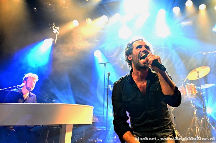 The Dutch Queen, een wat flauwe naam die de lading echter volledig dekt. Merijn van Haren (zang) en Kees Lewiszong (gitaar) maakten beiden furore in het helaas twee jaar geleden ter ziele gegane Navarone. Bassist Joost van Haaren kennen we van Krezip en Novastar, Henk Jan Heuvelink (toetsen en gitaar) speelde met Marike Jager en drummer Tim van Delft verdient zijn euro’s bij De Staat. Een enorme brok podiumervaring dus; óók als tributeband, want al enige jaren spelen ze de grotere poppodia plat. Maar vanavond voor het eerst in Breda. En niet voor het laatst, want Merijn kondigde al aan dat ze volgend jaar eind december terugkomen. Slimme marketing!