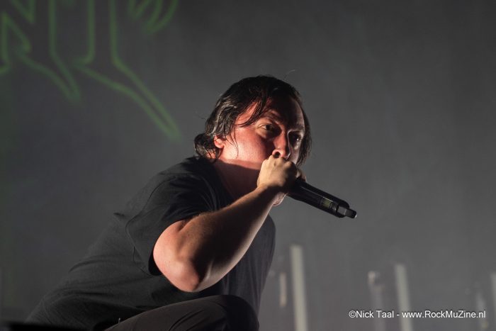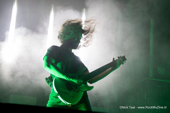 Vervolgens betreed Whitechapel het podium. De band draait al zo’n 20 jaar mee en maakt duidelijk gebruik van zijn status. Hoe weinig interactie de band ook zoekt, ze pakken het publiek direct mee in de wat meer groovy, duistere set. Met een extreem sterke lichtshow op de achtergrond brengt het vijftal (één van de drie gitaristen is niet meer op de tour) een daadwerkelijke muur van geluid. De set start met een zestal nummers van het nieuwste album “Hymns in Dissonance”, maar biedt daarna ook de ruimte voor ouder materiaal, met onder andere een drietal nummers van “Somatic Defilement”. De set die Whitechapel neerzet is van headliner niveau – de manier waarop de heren het podium en het publiek overheersen is meedogenloos. Ware het niet dat dit een korte set was (en er een volgende act beloofd was), zou men na Whitechapel op papier al zeer tevreden naar huis kunnen.