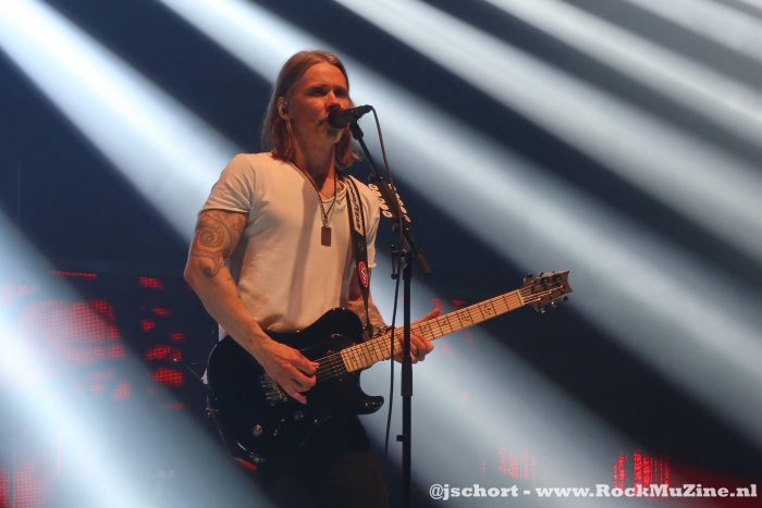 Kennedy’s stem moet een nummertje opwarmen, maar is daarna goed op stoom. Voor de variatie is het prettig dat Tremonti ook twee nummers zingt. De gitaarsolo’s zijn redelijk verdeeld over Myles en Mark, al schat ik die laatste nog altijd net wat hoger in. Verder moet vooral de muziek het doen vanavond: geen vuurwerk (op de kaarsjes op de taart voor jarige drummer Scott Phillips na) en geen grote showelementen. Voor een hal zo groot als de Ziggo Dome is dat misschien wat karig, maar eerlijk is eerlijk: het past ook niet echt bij deze band. De sympathieke presentatie van een uiterst ontspannen Myles houdt je intussen keurig bij de les. Het akoestische blokje – met ‘Wonderful Life’, dat naadloos overgaat in het gevoelige ‘Watch Over You’ – komt precies op tijd en biedt zowel band als publiek (én de oren) wat broodnodige ademruimte.