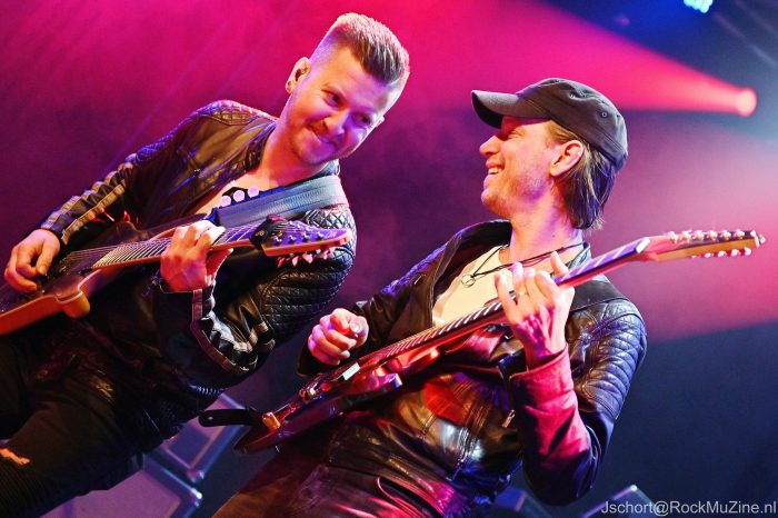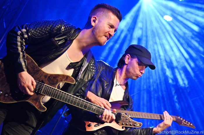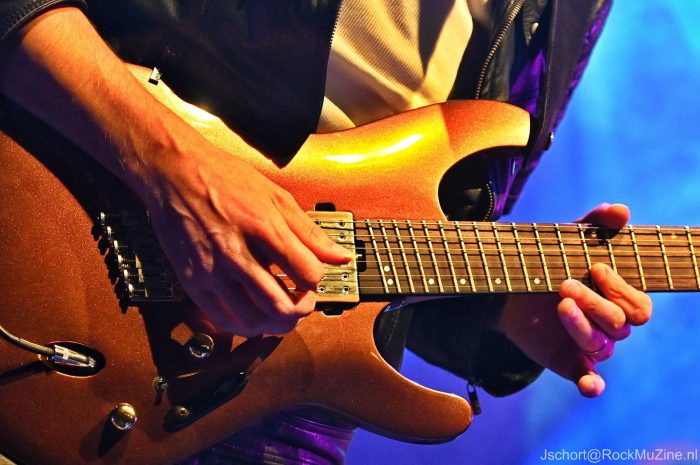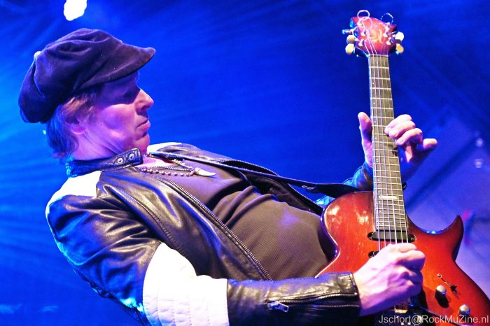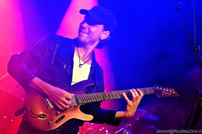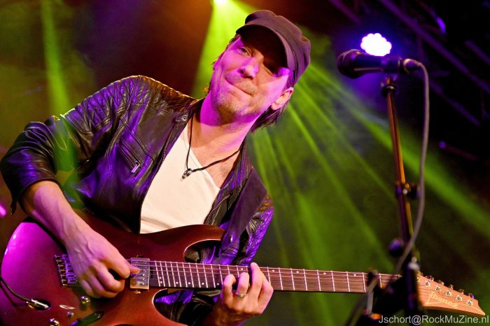 De onlangs wederom door tijdschrift Gitarist verkozen ‘Gitarist van het Jaar’ en ‘Beste Metal Gitarist van de Benelux’, Mark Bogert, mag de avond aftrappen. Hij was de enige relatief onbekende voor mij, maar weet me binnen één nummer te overtuigen. Wat een techniek, melodiegevoel en spelplezier! Zijn instrumentale drie kwartier vult hij deels met nummers van zijn uitstekende soloplaat ‘Antiquity Neon‘ en deels met overtuigende covers van Satriani, Gary Moore (het ultragevoelige ‘The Loner‘) en, verrassend genoeg, Reb Beach (het lekker voorstuwende ‘Black Magic‘). Zijn spel ligt geheel in de lijn van Satriani en doet daar geen seconde voor onder. Terechte uitverkiezing dus — en een heerlijke opener van de avond. Check vooral zijn nieuwe album eens uit.