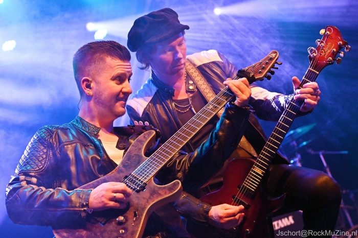 Menno Gootjes toont zich duidelijk beïnvloed door neoklassieke shredders als Tony MacAlpine, Vinnie Moore en Marty Friedman. Van alle drie speelt hij overtuigend nummers, met Friedmans ‘Dragon Mistress‘ als uitschieter. Wat een techniek en snelheid etaleert Gootjes hier — ik sta met open mond te kijken. Ook de Focus-ballad ‘Song for Eva‘ noteer ik als hoogtepunt. Met misschien wel het mooiste nummer van de avond, Satriani’s ‘The Extremist‘, sluit Menno zijn set af. Jammer dat zijn soloalbum net niet op tijd klaar was, want het voorproefje dat hij vanavond brengt, smaakt naar meer.